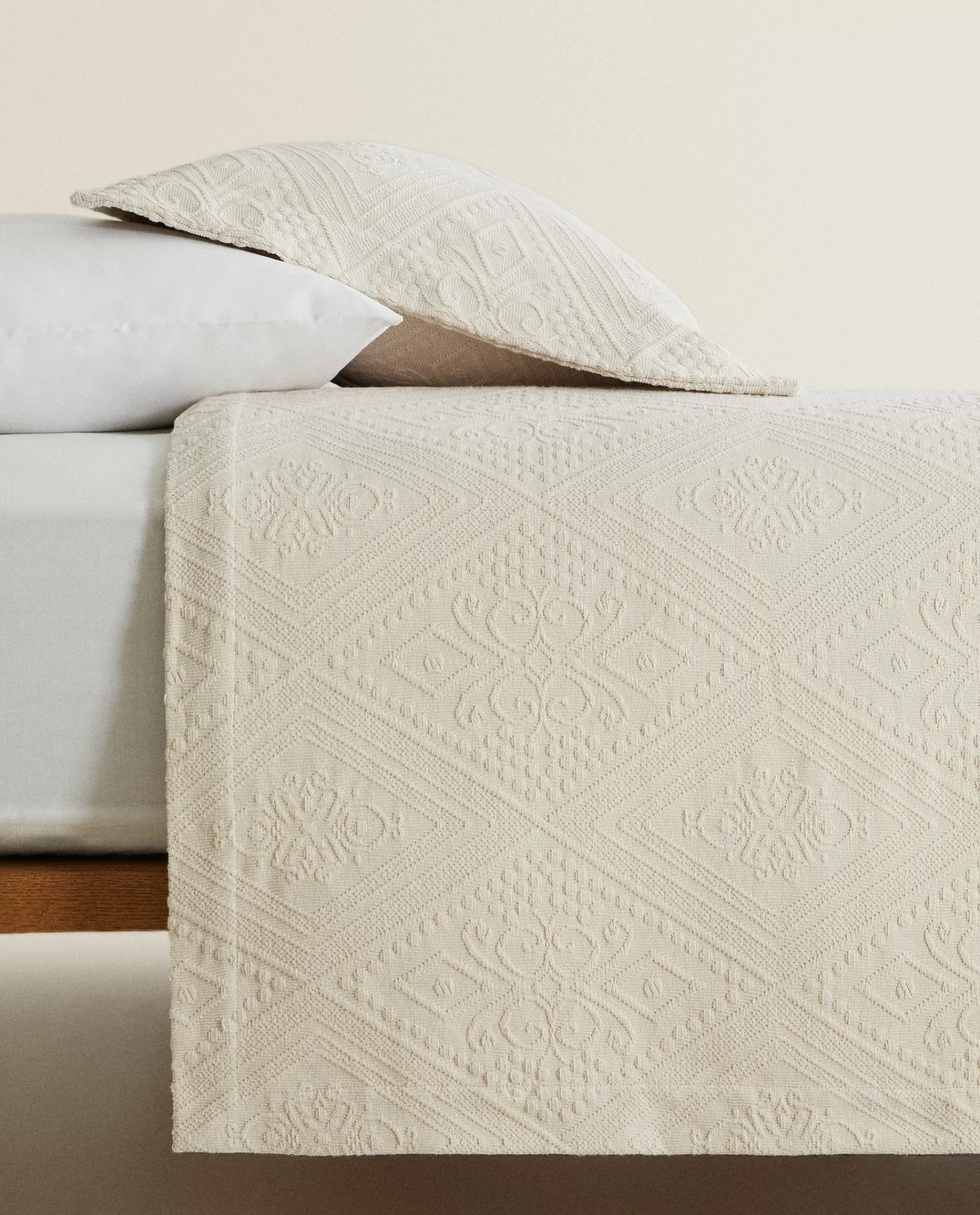ZARA Home Cotton Bedspread With Geometric Design Beige Hot