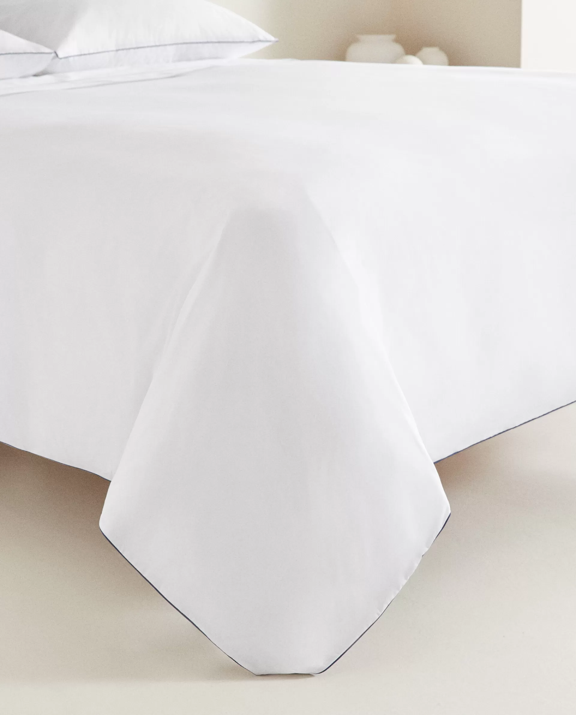 Duvet Cover In 300-Thread-Count Cotton Percale With A Plain Design And Contrast Blue Piping Detail. Concealed Button Fastening At The Bottom.