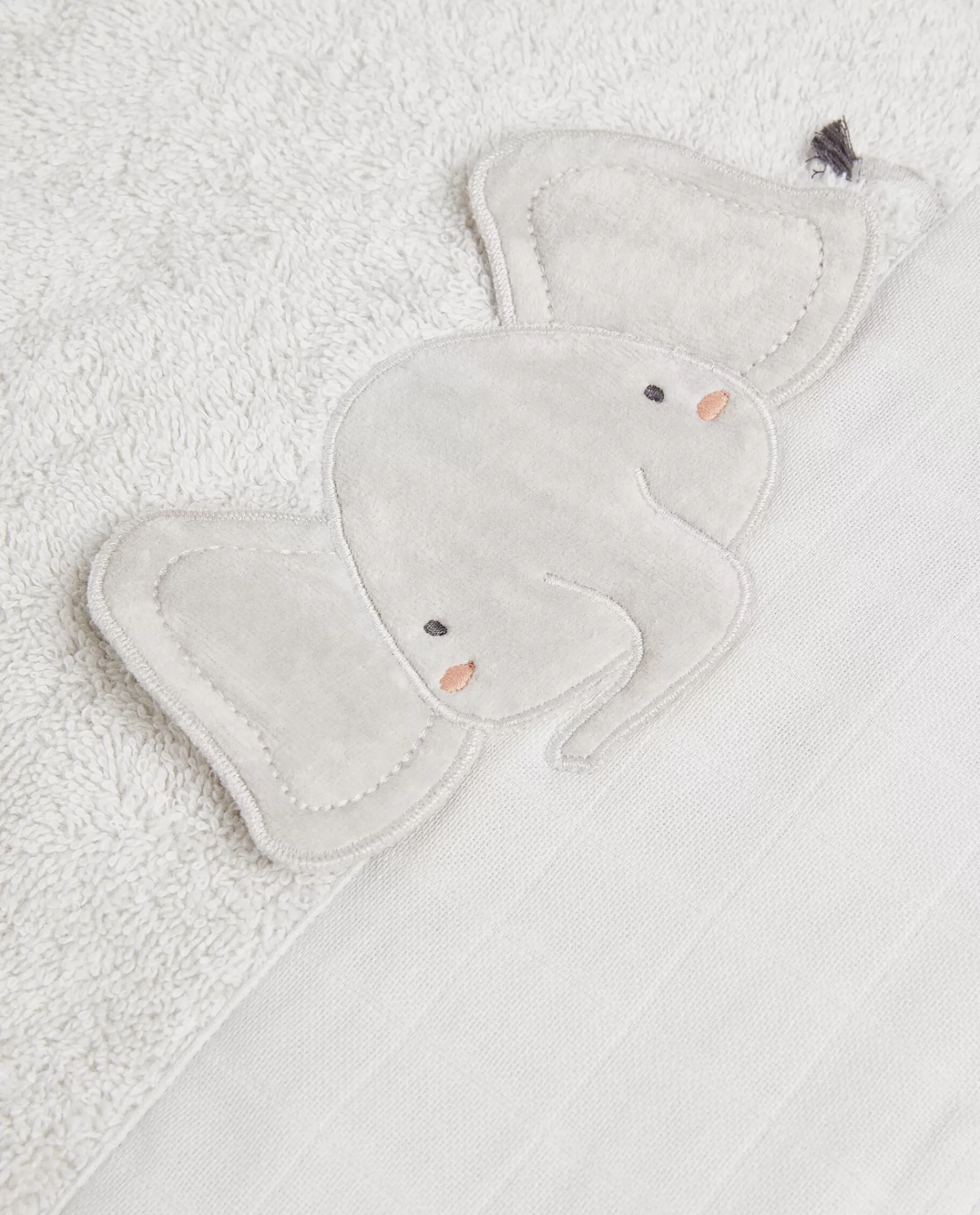 Children’S Towel Made Of Cotton Terrycloth With An Elephant Applique Detail.