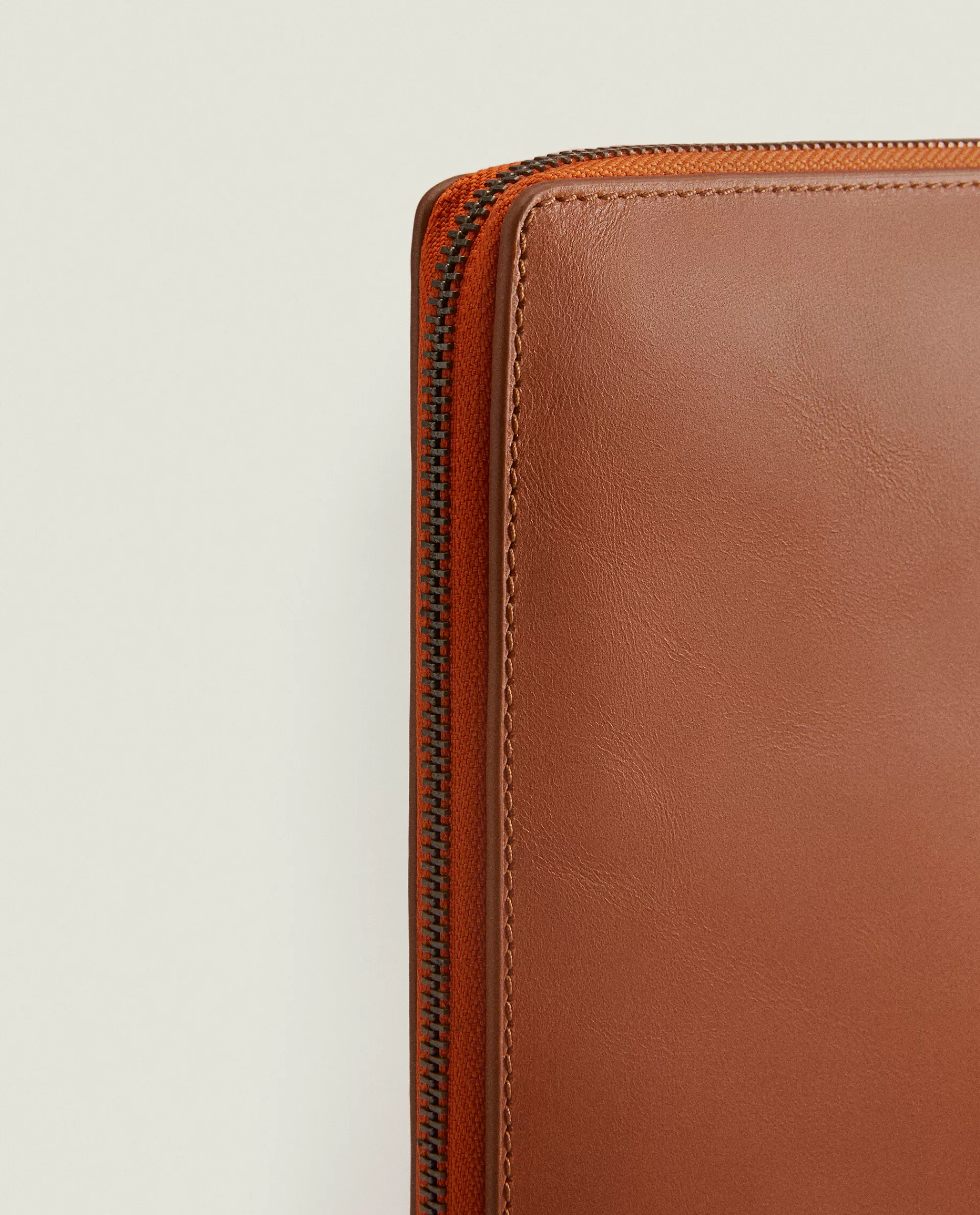 Leather Document Folder With Space For Tablet. Zipper Detail And Contrast Lining. Inside Pockets And Dividers For Accessories. Available In Brown And Black. This Item Is Part Of The Office Accessories Capsule Collection.