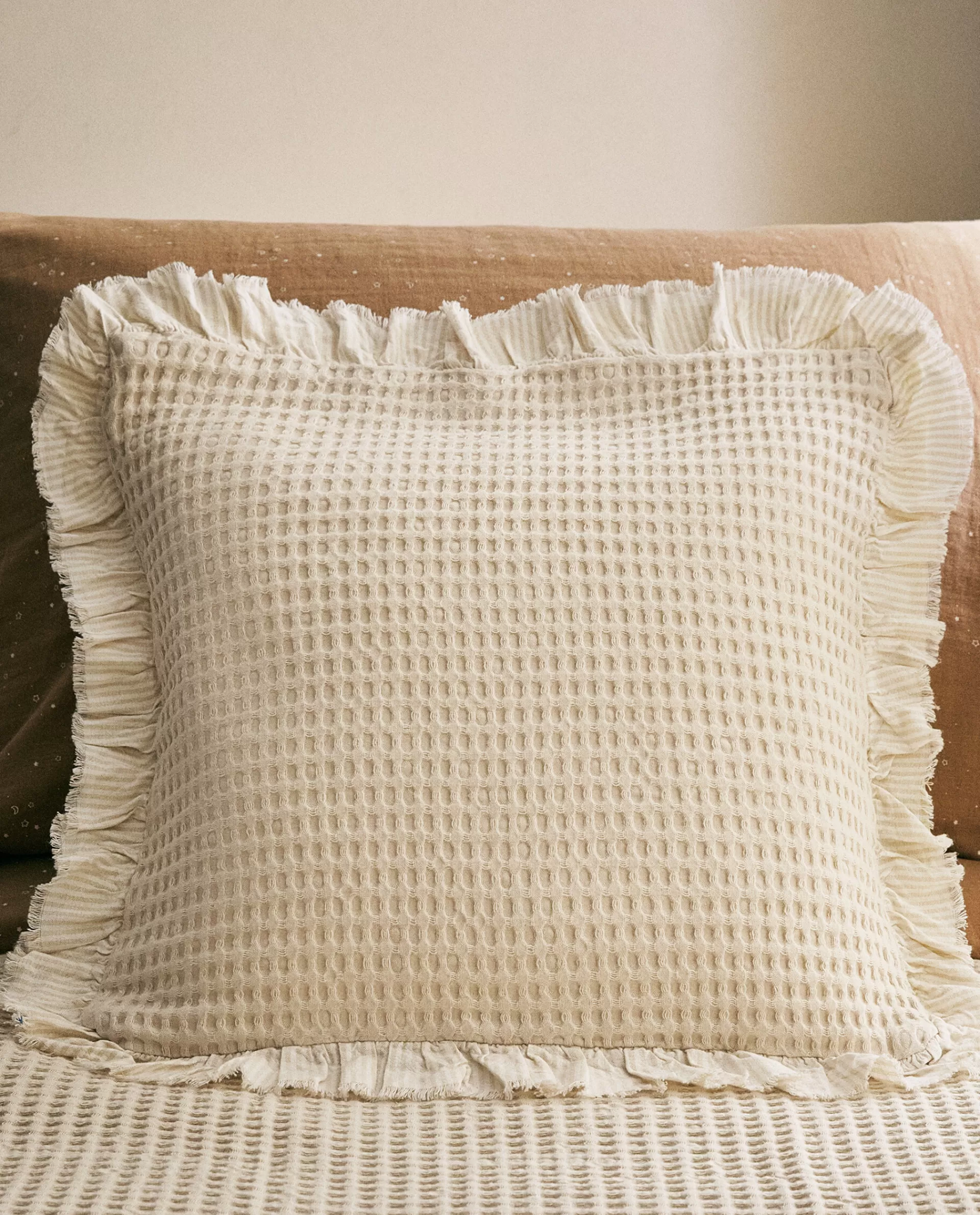ZARA Home Waffle-Knit Throw Pillow Cover Cream Flash Sale